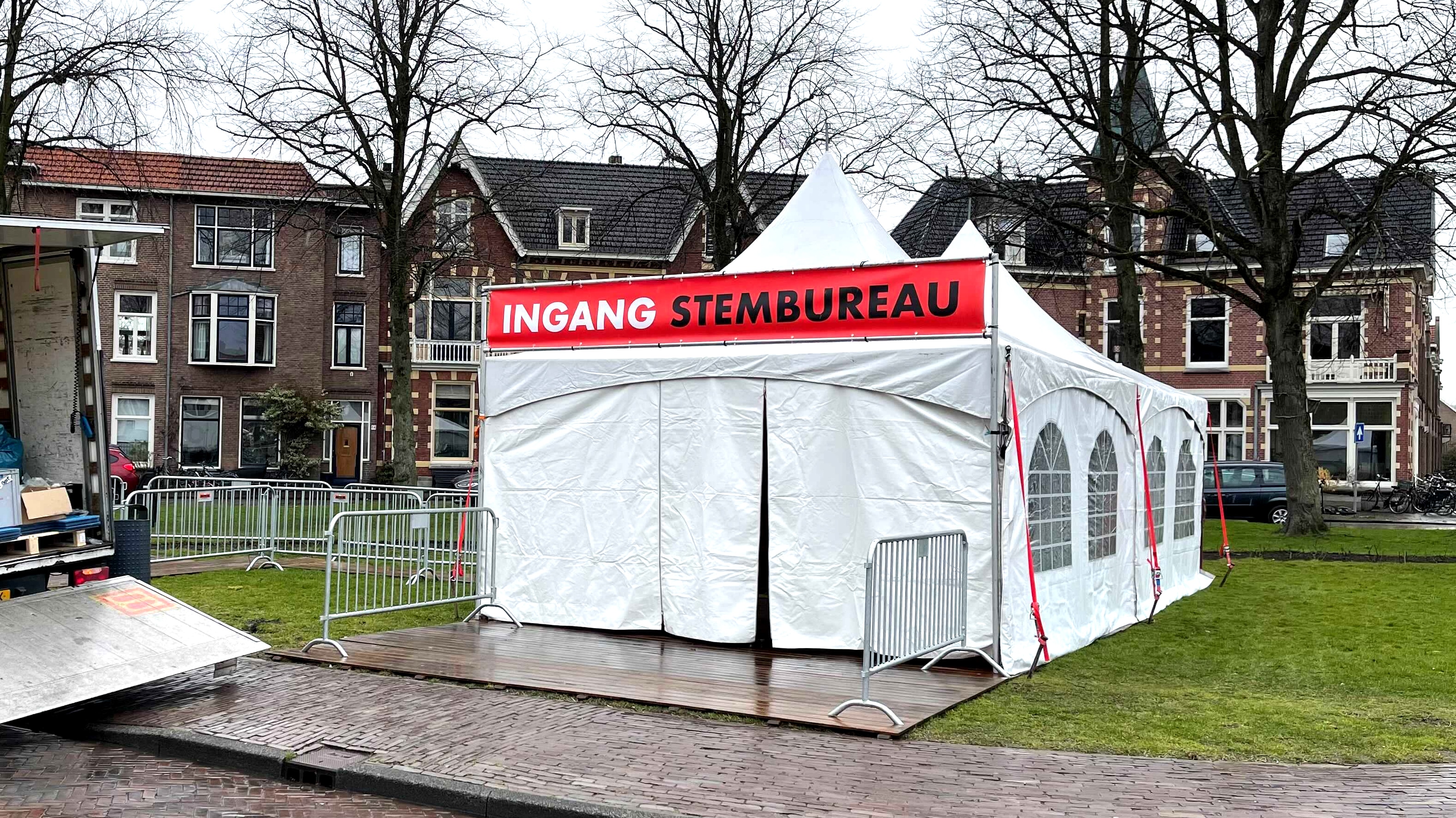 Soms moest de gemeente creatief zijn. Zo is er in het Kleverpark een “stemtent” neergezet.