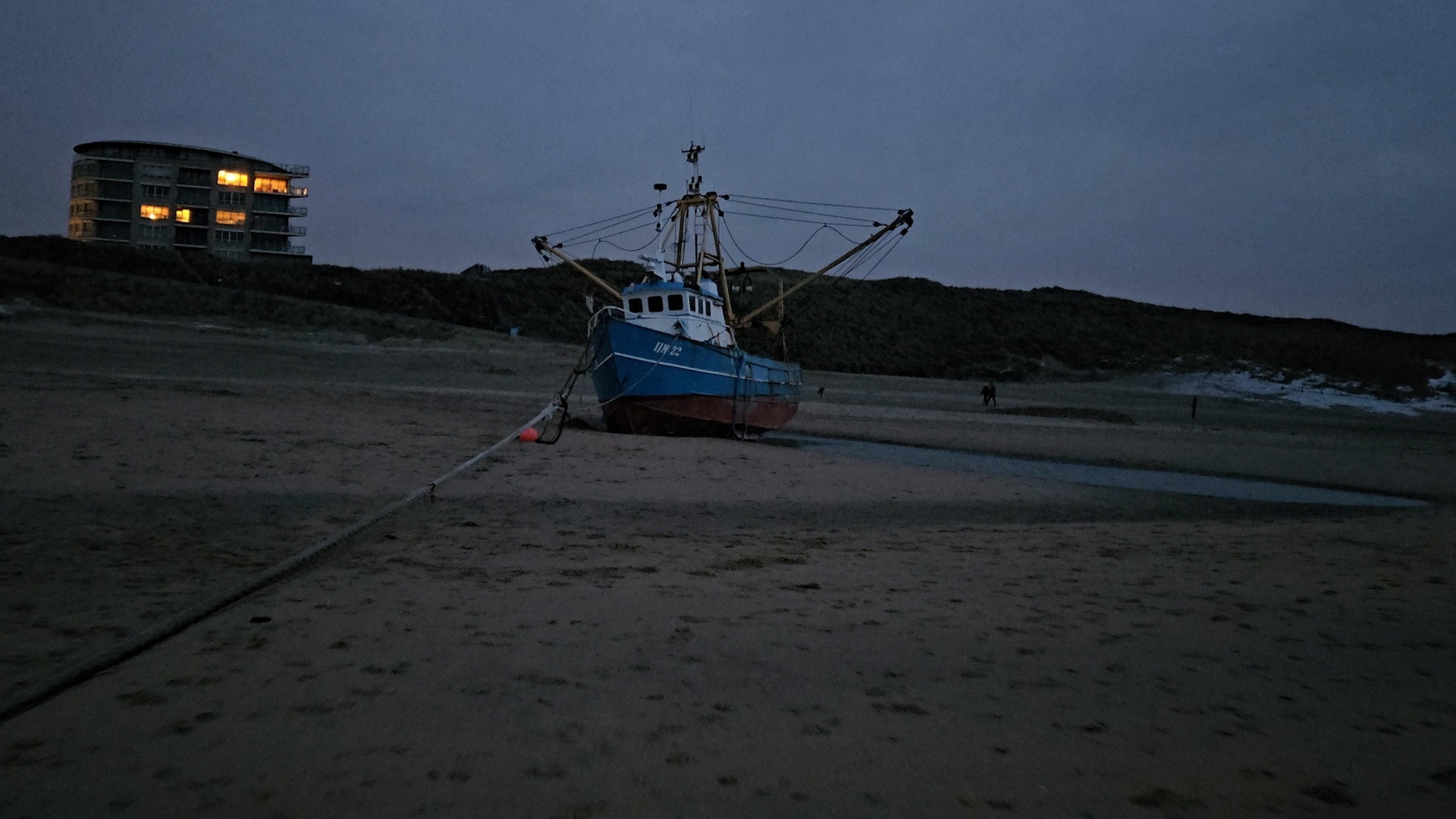 De blauwe boot met rode onderkant en witte kajuit begint bijna een bekend uitzicht te worden voor vele Zandvoorters. Vandaag is het drie weken geleden dat de boot is gestrand. “Ik loop er elke dag wel even langs”, vertelt een mevrouw die boven op de boulevard even stilstaat om naar de boot te kijken. Of ze deze week afscheid moet nemen van de boot? Lisette Reker, dochter van de eigenaar van de viskotter, hoopt van wel.