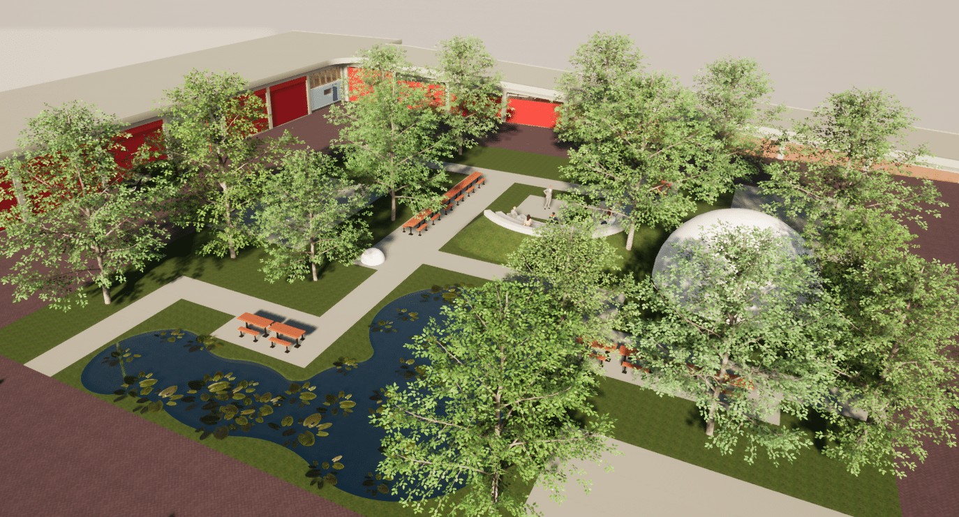 Er staat al een pizzaoven en als alle bomen er staan, komt er ook een amfitheater voor kleine optredens. “Het wordt echt het centrum van het terrein en een plek om samen te komen”, lacht Van Eden. “En niet alleen voor mensen, maar hopelijk ook voor vogels en bijen.”
