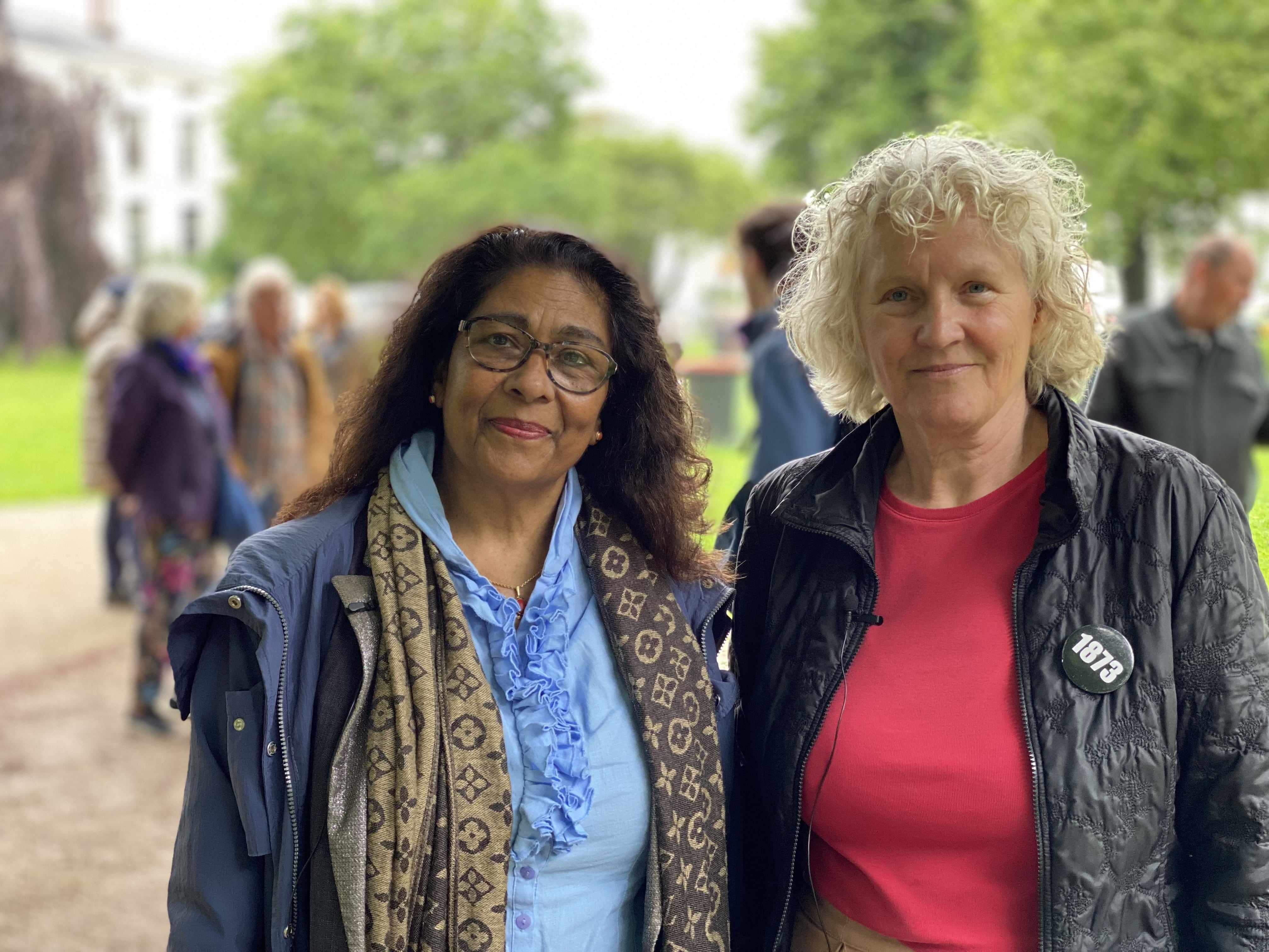De twee gidsen van de wandeling zijn historica Dineke Stam en Miriam Rasoelbaks. Voor Miriam staat het slavernijverleden pijnlijk dichtbij. Haar oma werd namelijk nog in 1914 tegen haar wil van India naar Suriname gebracht om te werken op een plantage.
