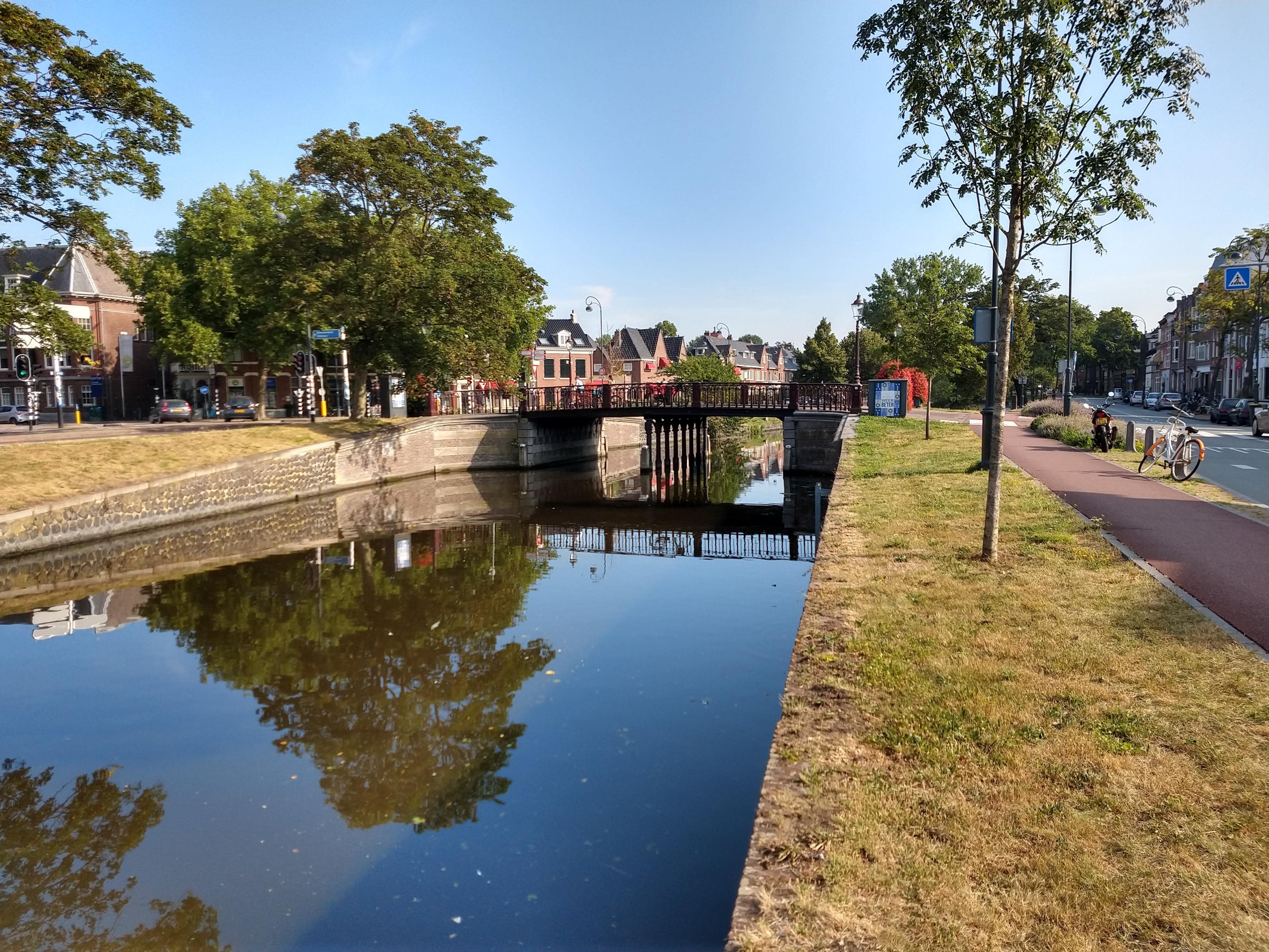Op de plek op de foto, heeft De Zijlpoort gestaan. De Zijlpoort was een van de Stadspoorten van de Vesting Haarlem. Daar vertrokken, dag en nacht, de reizigers uit Haarlem naar Leiden. De Leidsevaart is het Haarlemse deel van de trekvaart, in Leiden heet die de Haarlemmertrekvaart. De vaart volgt zoveel mogelijk rechte lijnen, waardoor de afstand beperkt blijft tot een kleine 30 kilometer. Na vier uur varen bereik je de eindbestemming. Niet alleen de passagiers profiteren van dit moderne vervoermiddel. Beide steden vragen een vergoeding voor de doorvaart, de tol. Met de opbrengsten daarvan wordt de verbinding onderhouden. Het planten van riet voorkomt schade aan de oevers.