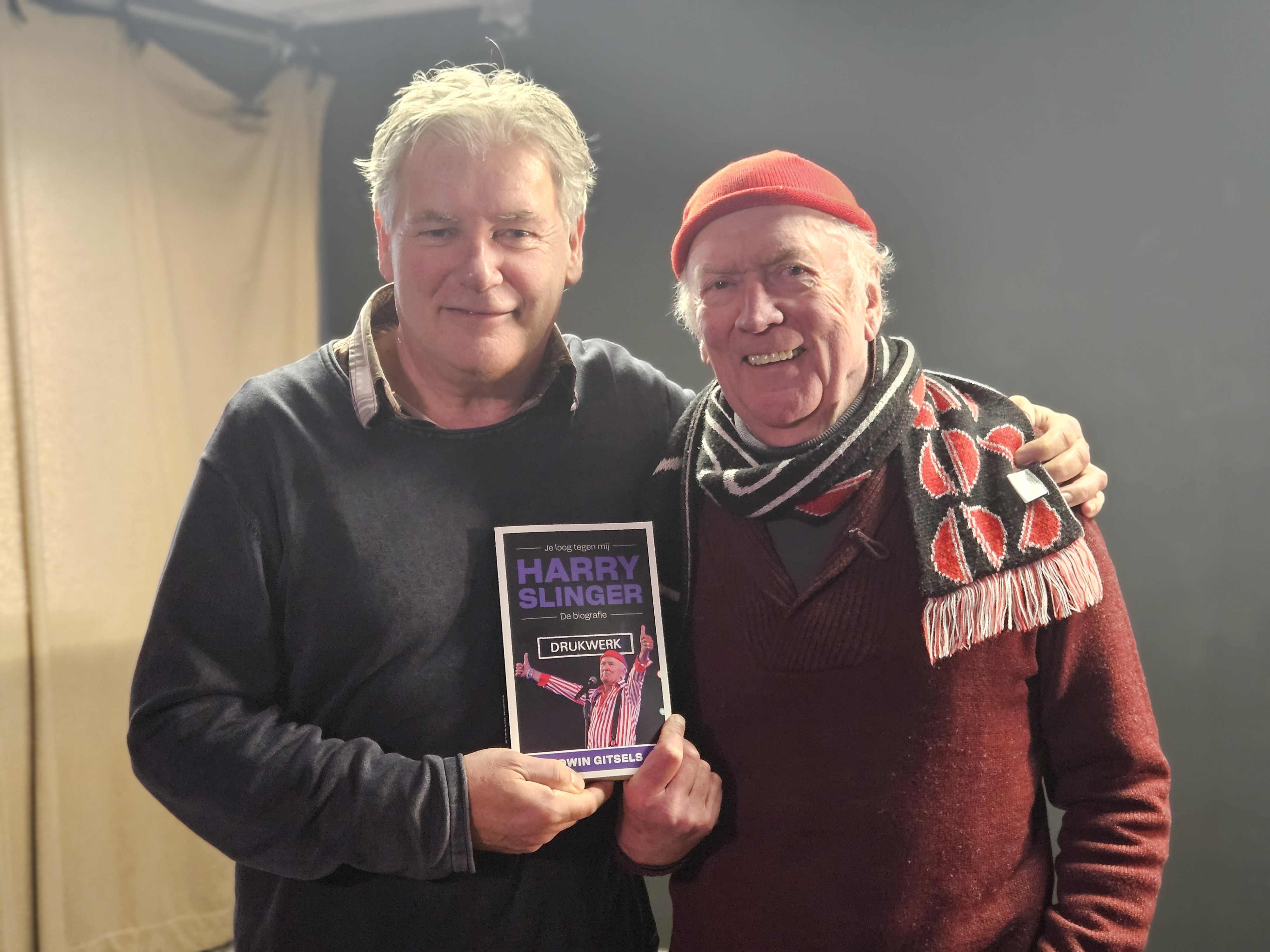 In de radio-uitzending waar Gitsels over het boek praat zijn Slinger en zijn zoon ook aangeschoven. Het boek is vernoemd naar de eerste grote hit die de band had “Je loog tegen mij”. “Toepasselijk, omdat het boek ook gaat over mensen die tegen Harry hebben gelogen”, benadrukt de biograaf. Met z’n drieën spelen ze de hit live in de studio.