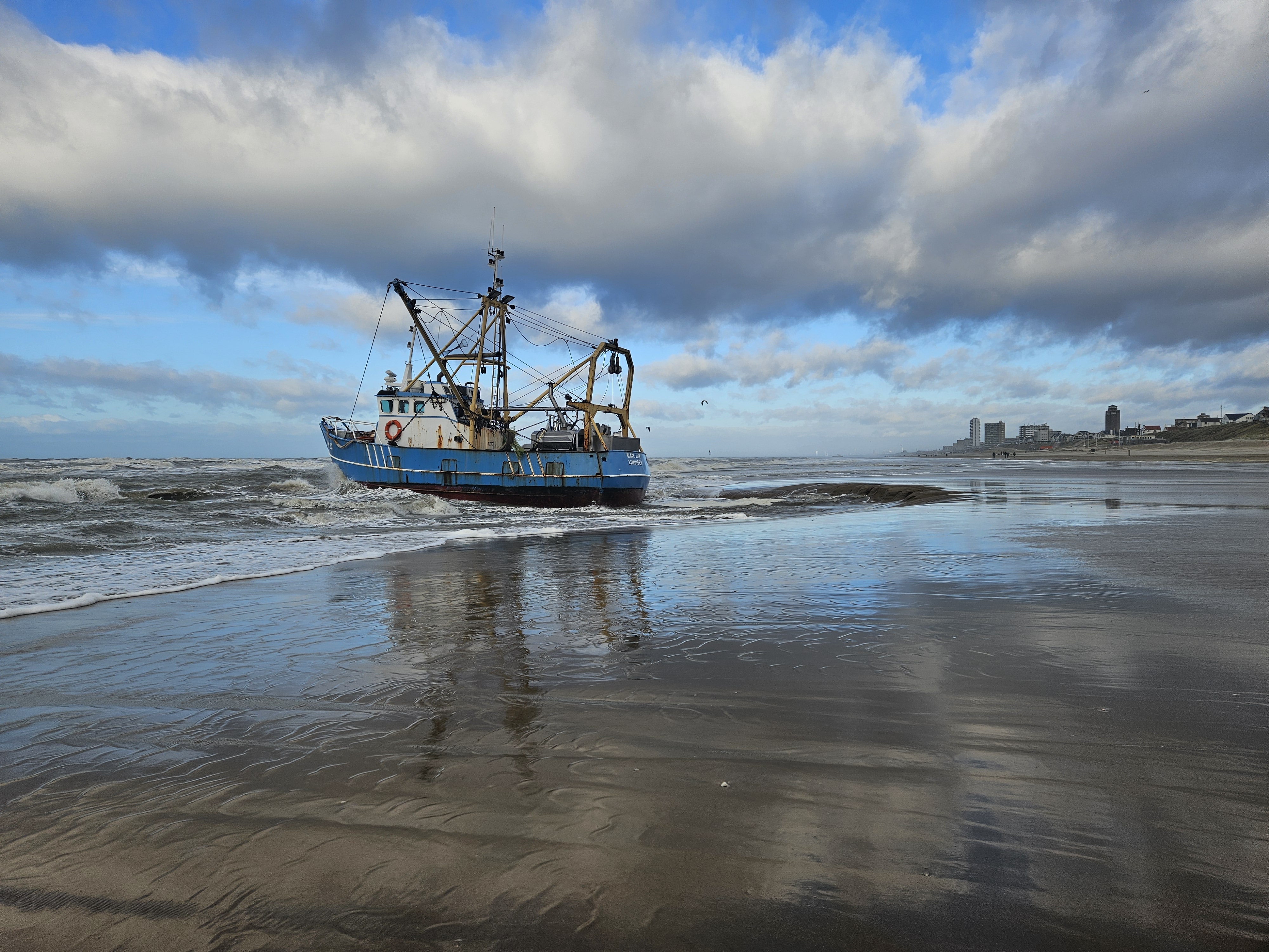 Rijkswaterstaat dacht de viskotter vandaag al los te trekken maar doordat een touw knapte mislukte de poging. De bemanning is nog steeds op de boot aanwezig en wacht op een verlossende ruk. In de avond bij hoger water heeft Rijkswaterstaat het opnieuw geprobeerd, maar weer geen geluk. Er zijn bolders afgebroken, dit zijn belangrijke bevestigingspunten op boten hierdoor wordt het lostrekken nog lastiger.