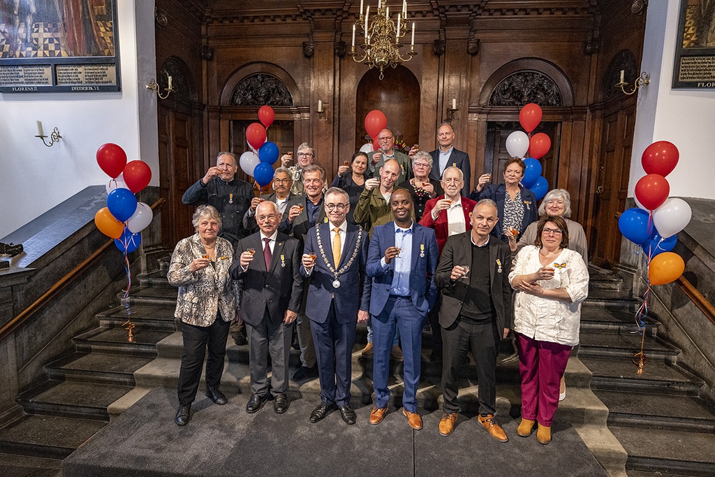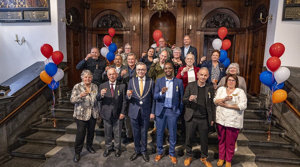 ‘Het heeft Zijne Majesteit de Koning behaagd u te benoemen tot Ridder in de Orde van Oranje-Nassau.’ Tijdens de jaarlijkse lintjesregen op de dag voor Koningsdag werden zeventien Haarlemmers vanochtend Koninklijk onderscheiden. Burgemeester Jos Wienen benoemde vijf bewoners tot Ridder in de Orde van Oranje-Nassau. Twaalf anderen zijn Lid in de Orde van Oranje-Nassau. Zij kregen het beroemde lintje door de burgemeester opgespeld.