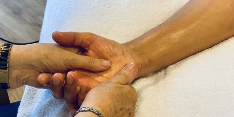 “Dit is wel echt ontspannen. Wat heerlijk,” zegt Melanie. Masseur Esther kneedt haar onderarmen. “Kijk, deze armen lijken wel heel poezelig, maar er wordt hard mee gewerkt en er zit best wat spanning in. Goed om ze even onder handen te nemen.”