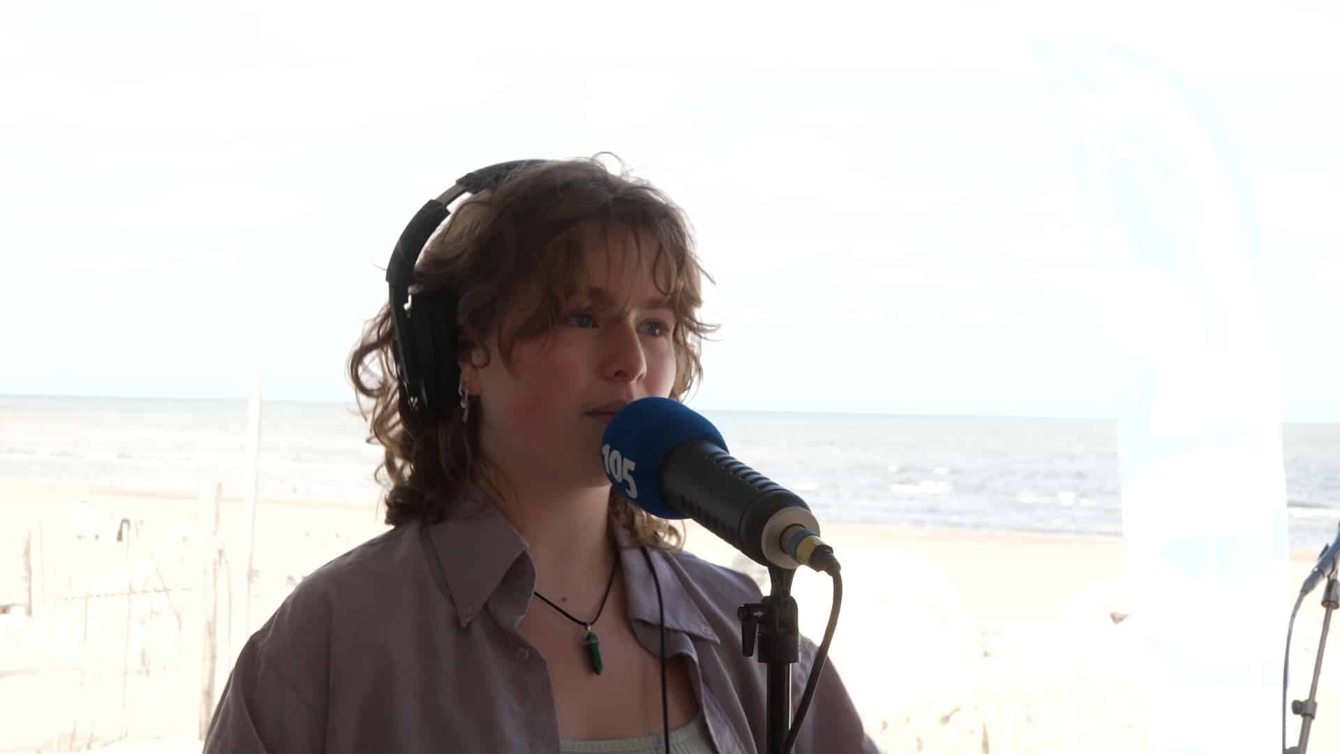 De Haarlemse singer-songwriter Chiara Bon trad live op bij 105 Aan Zee op het Zandvoortse strand. Samen met gitarist Stan speelde ze onder meer het nummer Black Fireflies, een krachtig feministisch lied over de subtiele maar diepe ongelijkheid waar vrouwen dagelijks mee te maken hebben.