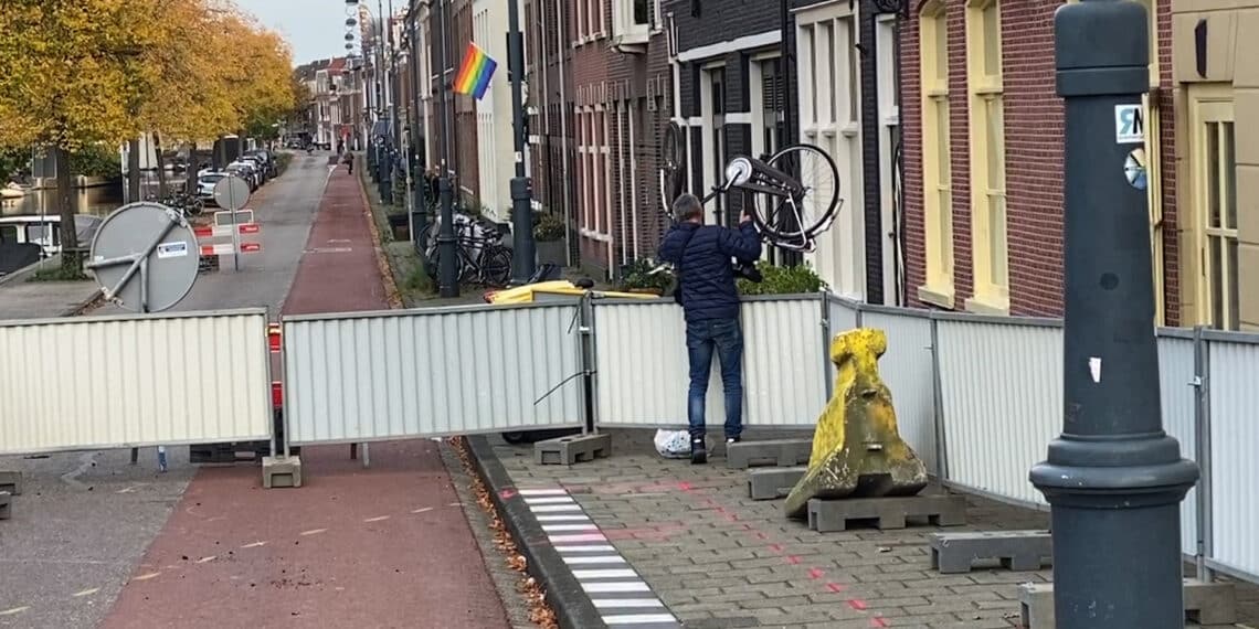 De gemeente Haarlem is gister begonnen met een renovatie van de brug. Overdag stonden er verkeersregelaars op het kruispunt, maar in de avond waren deze nergens te bekennen. Django Cop van Bloemenstal Jan Cop ziet honderden mensen keren voor zijn zaak. “Ik zie ook veel mensen over de hekken klimmen om af te snijden.”