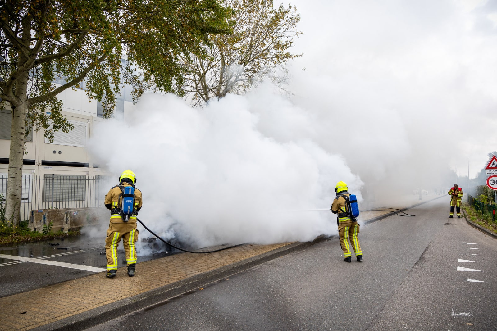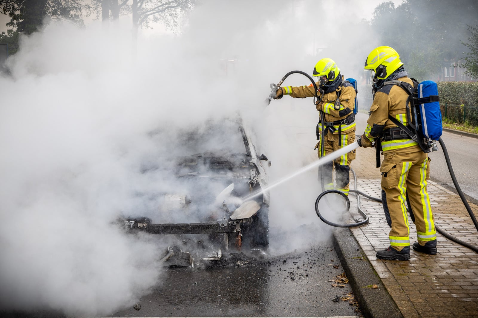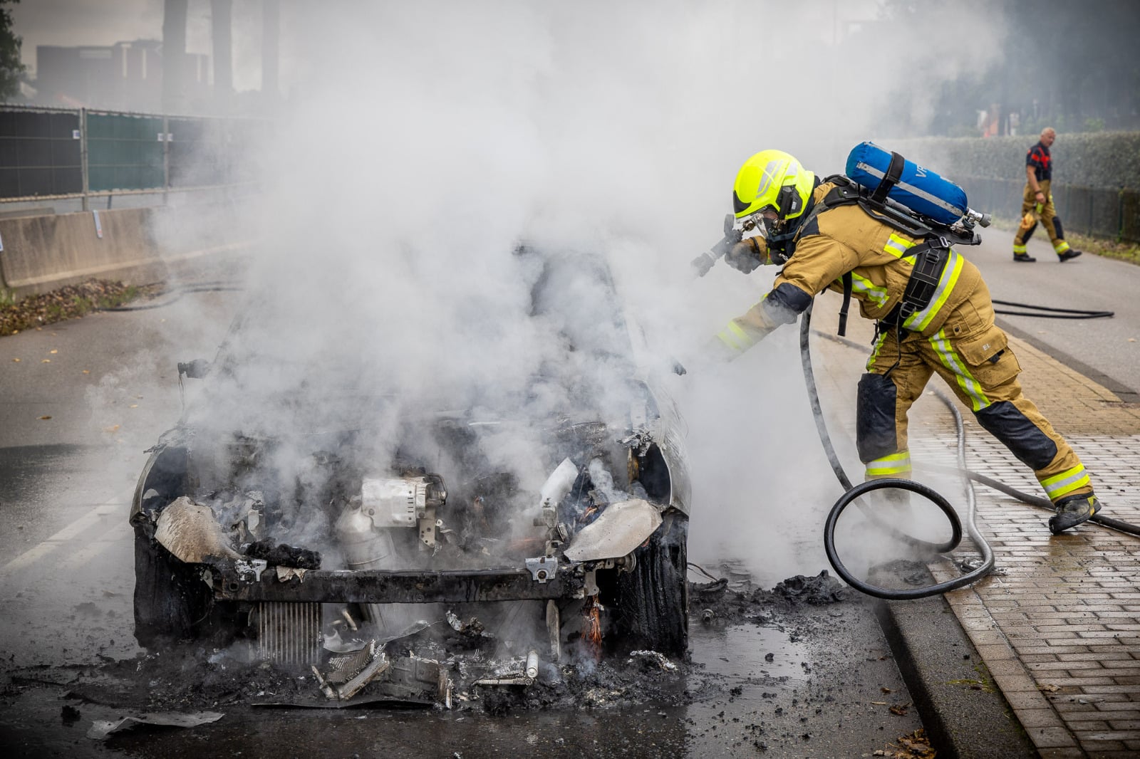 Volgens een woordvoerder stond de auto al volledig in brand toen de brandweer arriveerde. De brandweer kreeg het vuur snel onder controle, en het verkeer kan inmiddels weer normaal doorrijden. Van de auto is weinig meer over. Een berger zal het voertuig afvoeren.