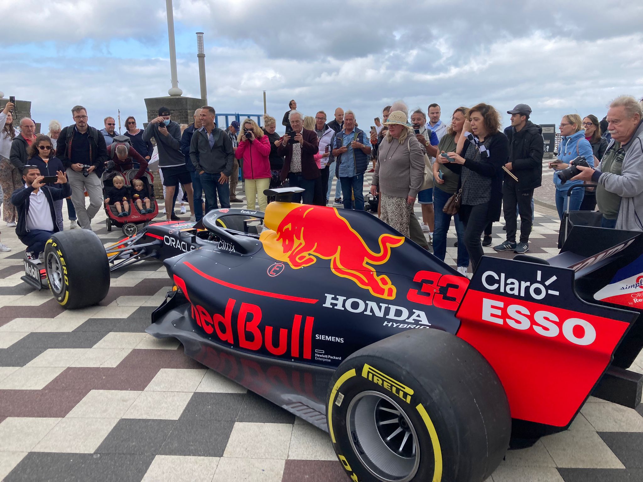 De racewagen van Max Verstappen staat vanochtend voor heel even geparkeerd op het Badhuisplein van Zandvoort. Om een grote toestroom aan mensen te voorkomen, heeft de gemeente Zandvoort er vooraf geen ruchtbaarheid aan gegeven. Maar de wagen staat er echt, tot grote verrassing van sommigen.
