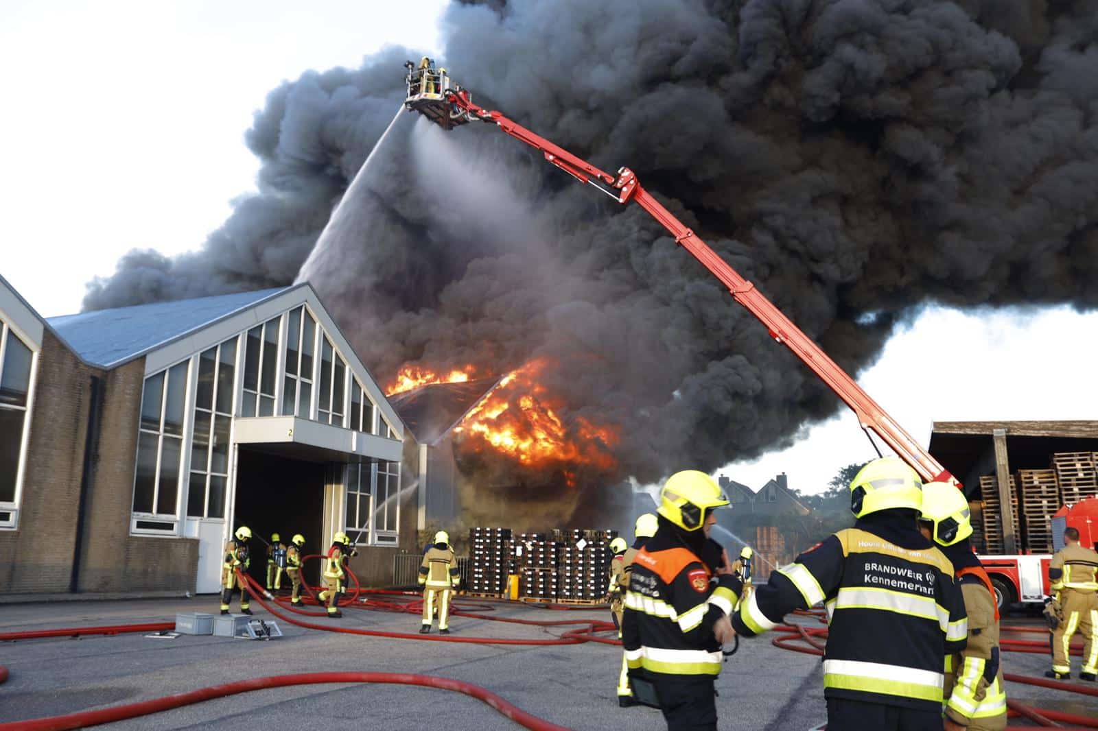 De brand ontstond vanochtend rond 06:00. Het gaat om drie loodsen van een agrarisch bedrijf. Vanuit de hele regio zijn brandweerlieden naar de brand toe. Ook is er een grootwatertransport opgestart, om voldoende bluswater aan de brandweerwagens te voorzien. Het pand kan waarschijnlijk als verloren worden beschouwd.