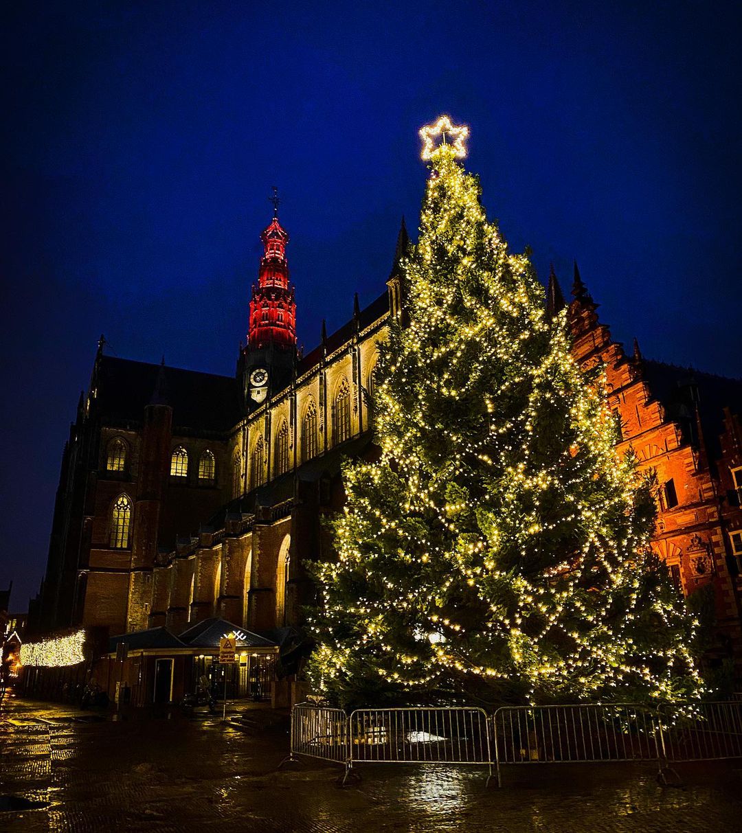 De gemeente Haarlem heeft gisteren weer een kerstboom geplaatst op de Grote Markt. Het exemplaar komt uit Duitsland.