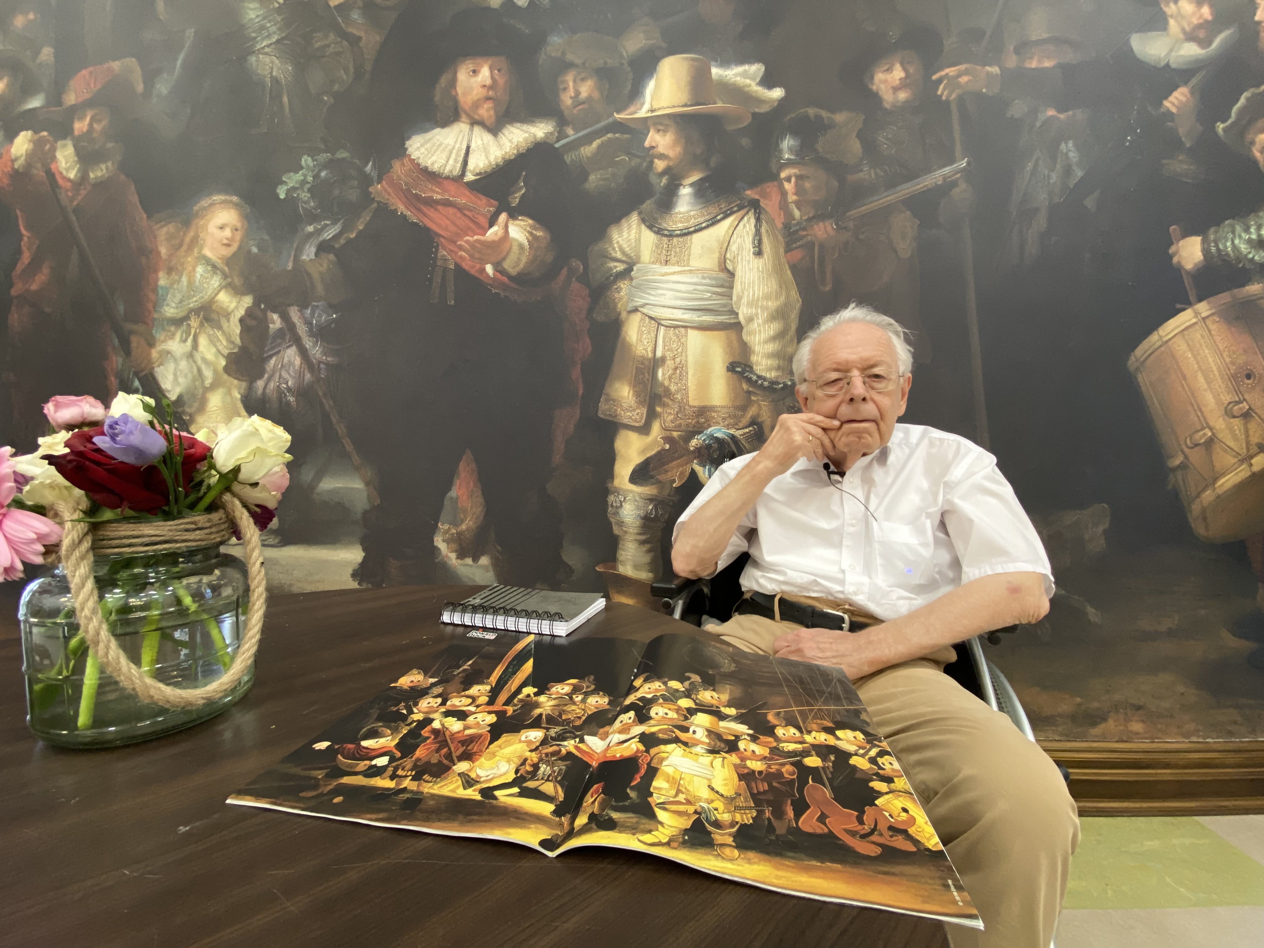 Het was voor meneer Balm alsof oude tijden herleefden toen hij de levensgrote replica van de Nachtwacht zag. Het Rijksmuseum heeft het wereldberoemde schilderij in verzorgingstehuis Nieuw Delftweide geplaatst zodat ouderen van kunst kunnen genieten. Voor bewoner Balm extra leuk omdat hij als Donald Duck-tekenaar de Duckwacht tekende.
