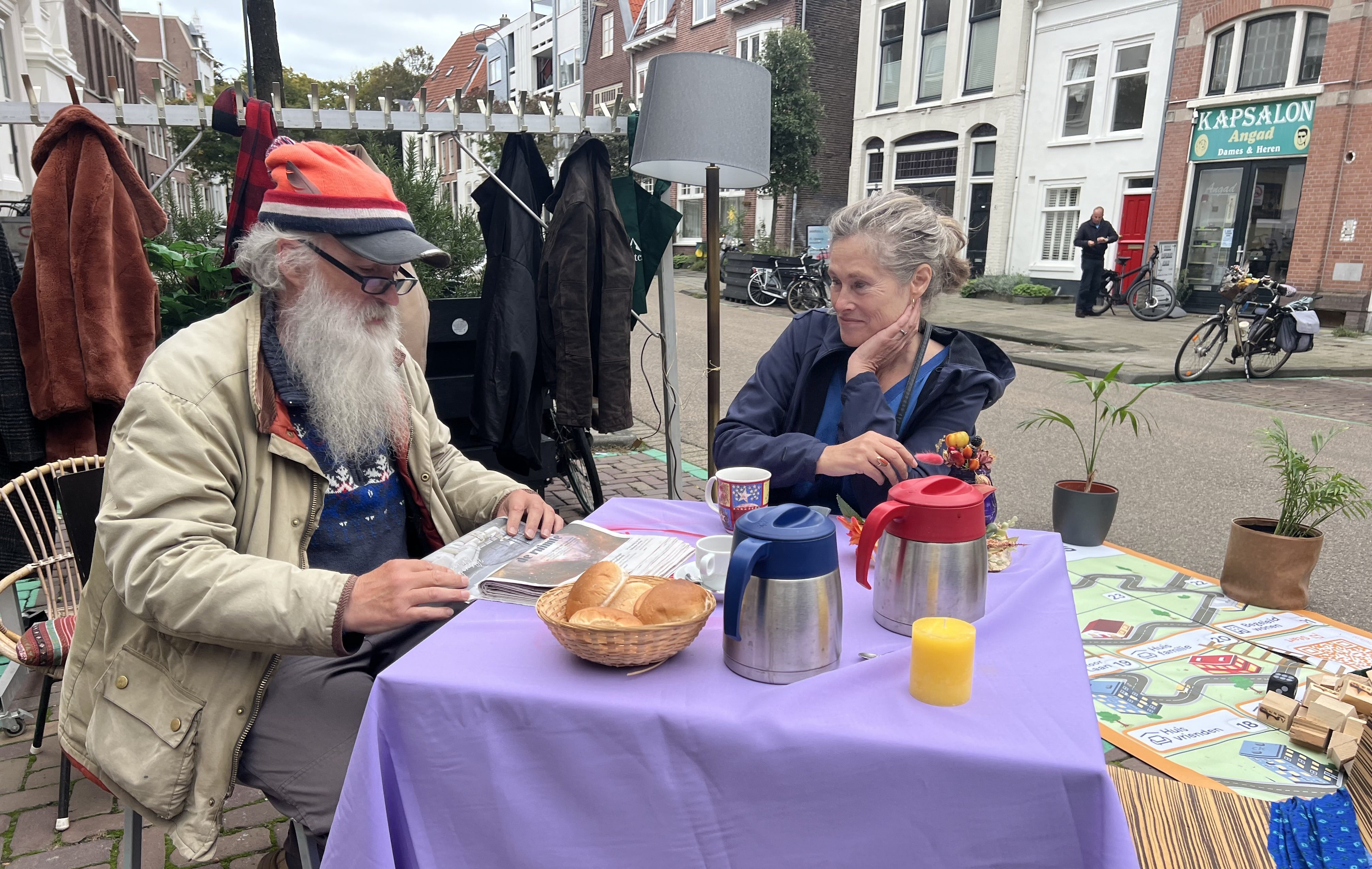“Omdat het vandaag Wereld Daklozendag is, hebben we de huiskamer neergezet”, vertelt pastoraal manager Joost van den Bogert van Stem in de Stad. “Zodat we met voorbijgangers in gesprek kunnen gaan over de schrijnende situatie. Natuurlijk moeten we bouwen en dat doet Haarlem al best goed, maar we willen vooral ook pleiten voor het voorkomen van leegstand en dat mensen hun huizen worden uitgezet. Ook moet het delen van een huis niet worden beboet.”