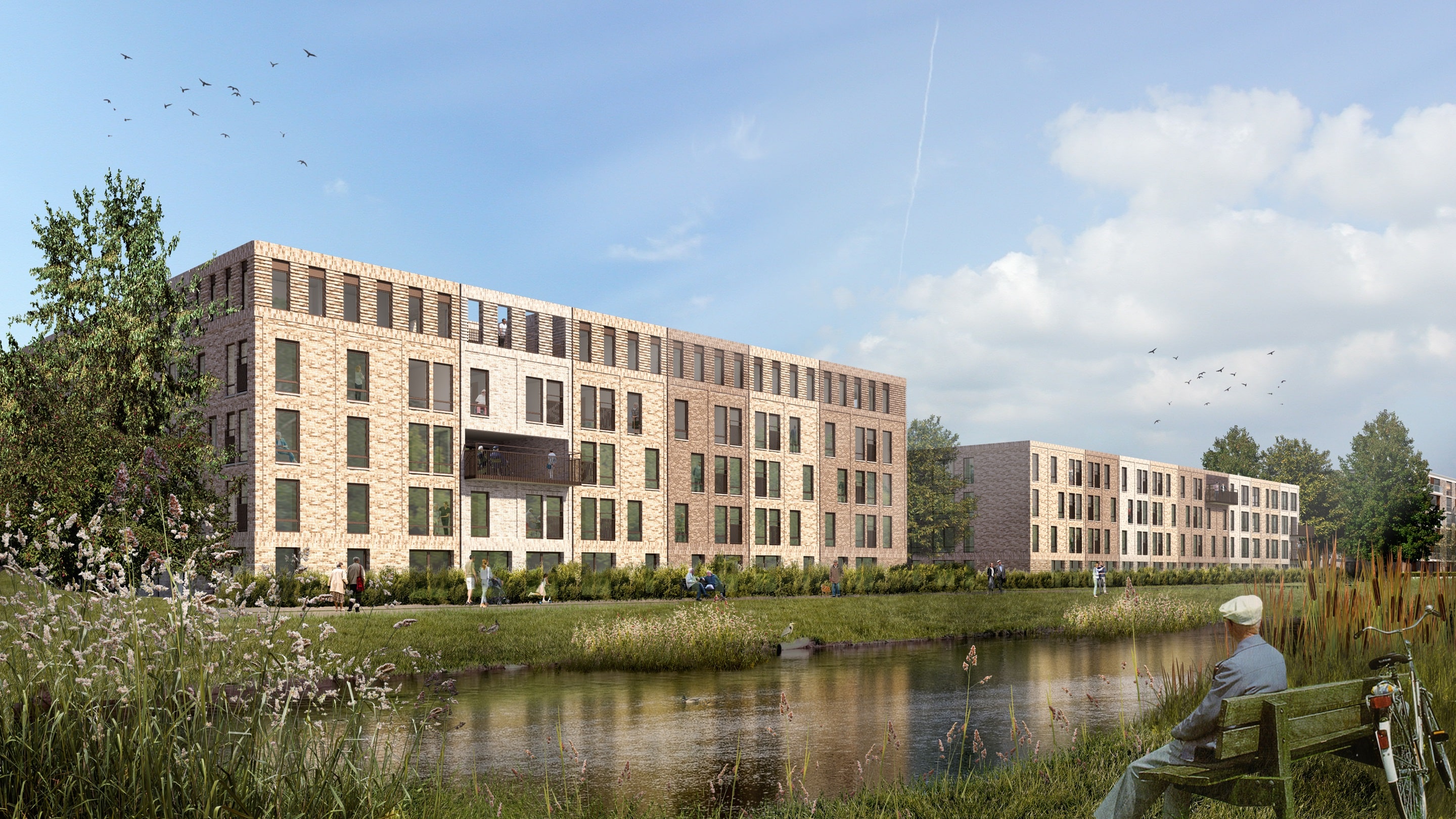 De bouw van het tweede deel van Hof van Jacob, met zelfstandige zorgwoningen, is inmiddels gestart en wordt de komende jaren in fasen afgerond. Zie hieronder een impressie van de binnentuin en vanaf de Amerikavaart.